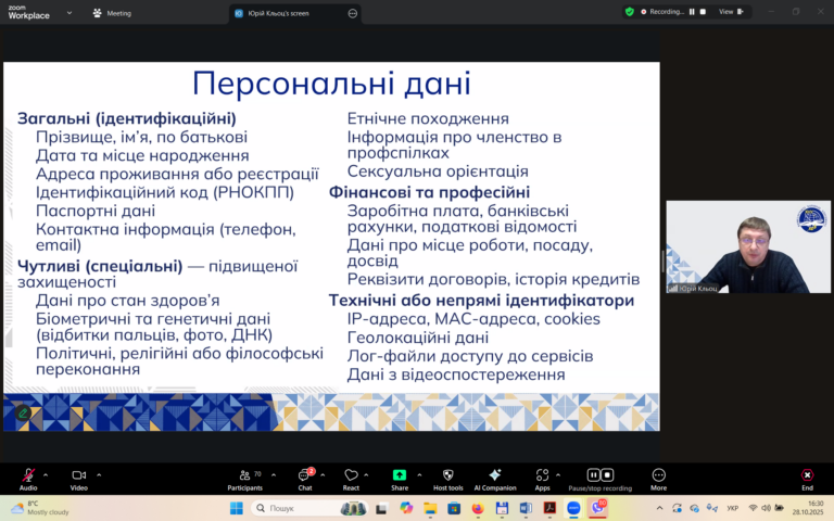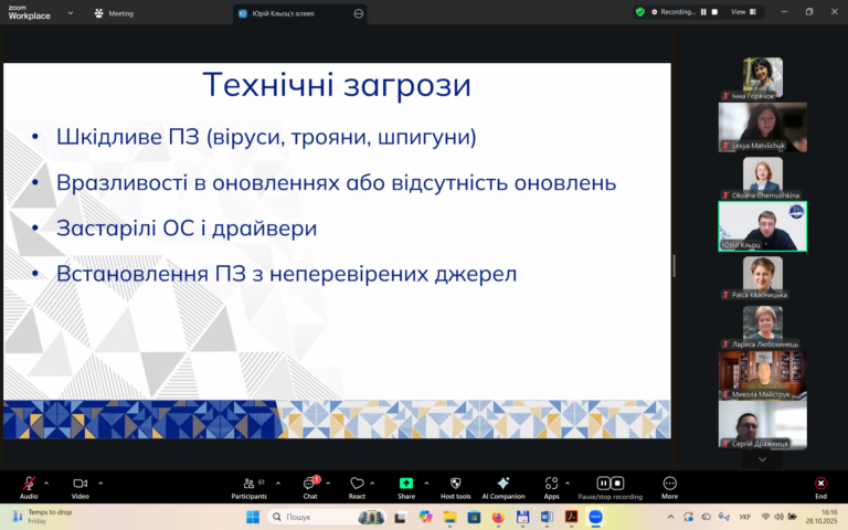 28 жовтня 2025 року у Хмельницькому національному університеті відбувся вебінар для науково-педагогічних працівників на тему «Безпечне використання програмного забезпечення в освітньому середовищі».