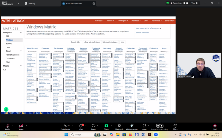 Під час вебінару учасники ознайомилися з основними принципами кібербезпеки, ризиками, пов’язаними з використанням неліцензійного програмного забезпечення, а також із практичними рекомендаціями щодо захисту персональних даних та інформаційних ресурсів університету. Спікер звернув увагу на важливість дотримання етичних і правових норм при роботі з цифровими інструментами, а також на необхідність формування культури інформаційної безпеки в освітньому середовищі.