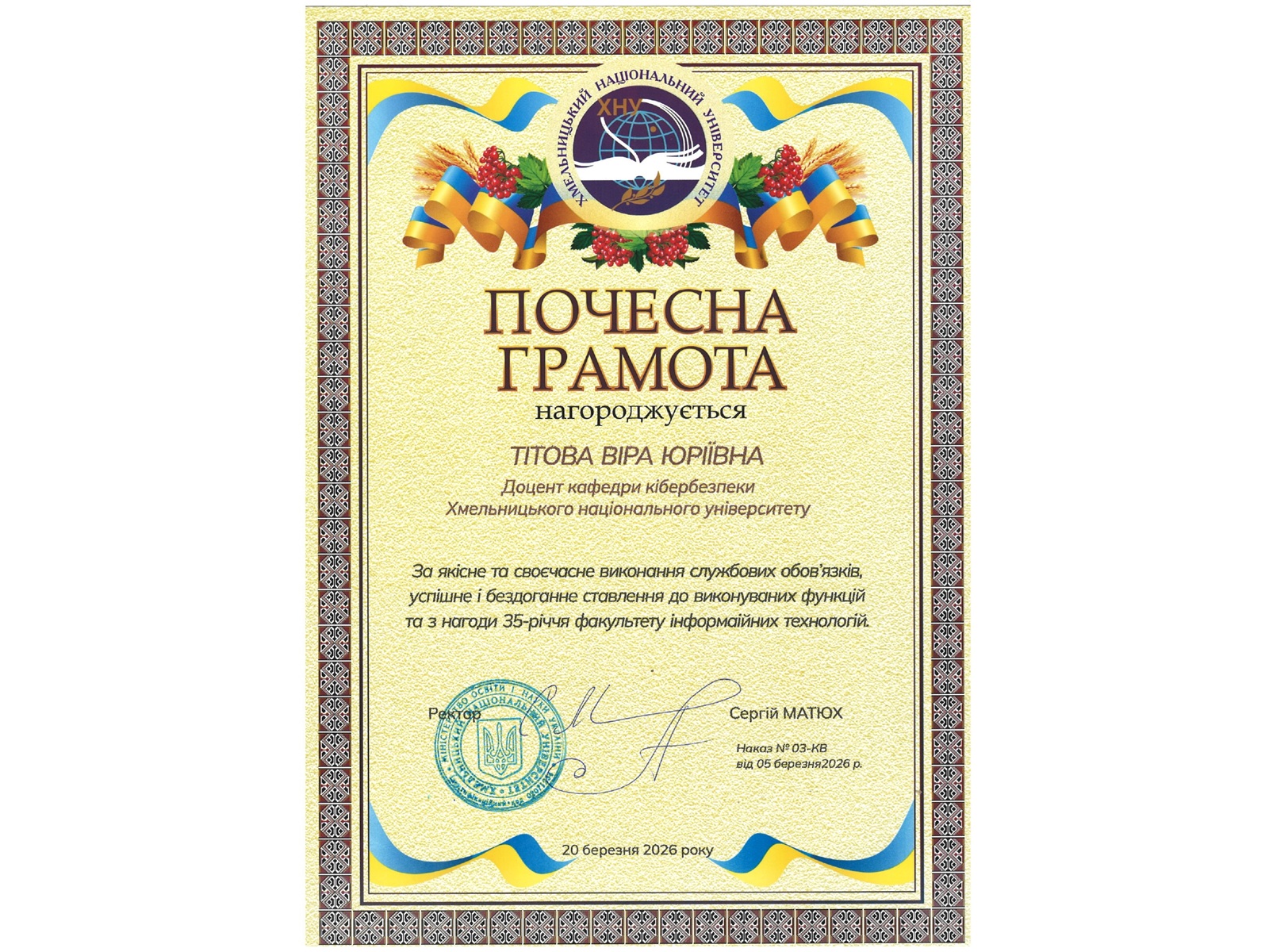 2004-2020 - teaching at Khmelnytsky National University.